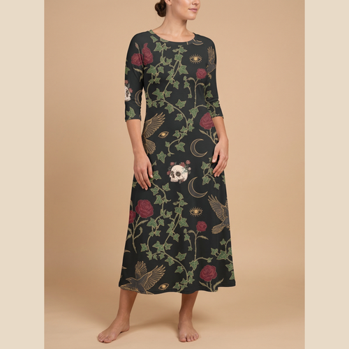 Maiden Bloom was born from a love of florals, free spirits, and fashion that feels like you. We design all-over-print dresses that blend boho ease with dark romantic edge—think midnight gardens, celestial blooms, and whimsigoth energy. Every piece is made to help you express your unique style, whether you’re wandering a festival or owning the room.